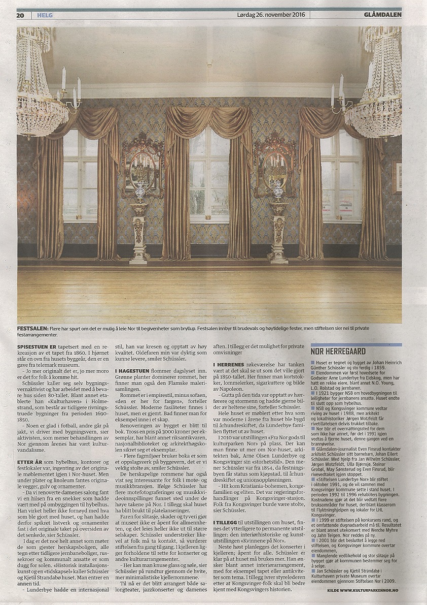 ‍Nor Herregård 2016 Glomdalen Avis presenterte i november 2016 seks helsider om Nor Herregård