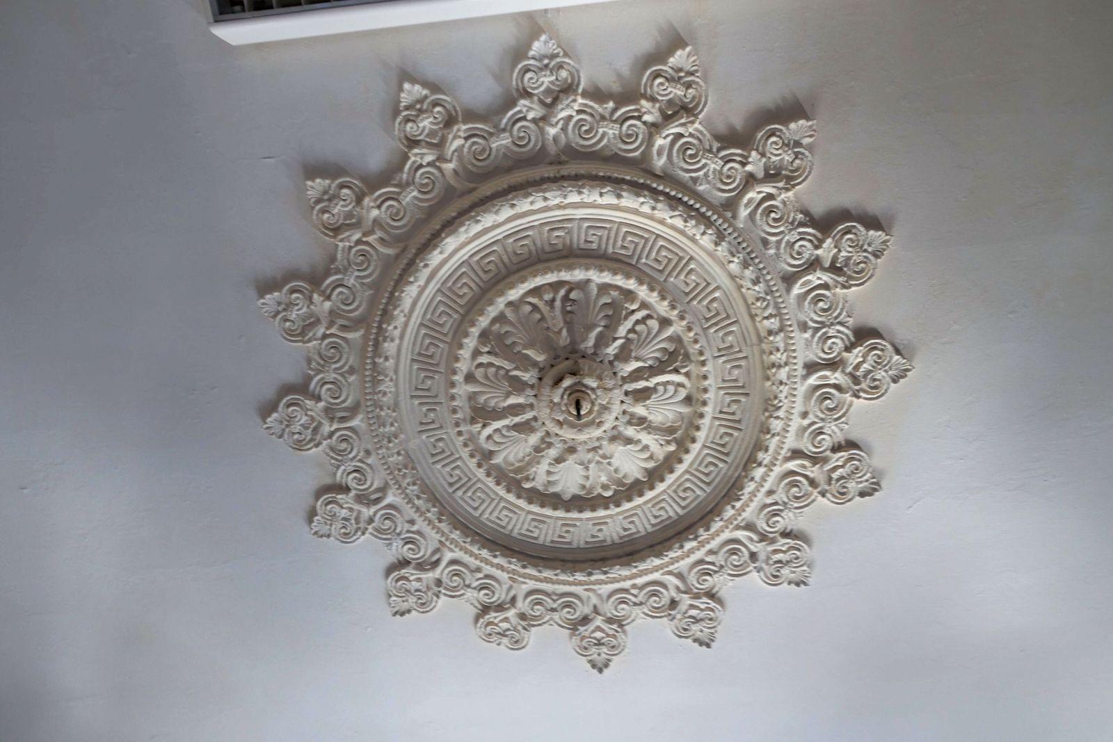 STUKKATUR: Et par av rommene har beholdt dekoren i taket. Det skal kun være ett av mange moment som gjør bygget bevaringsverdig. FOTO: FRANK JOHANNESSEN