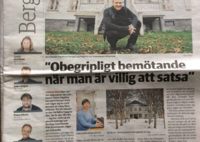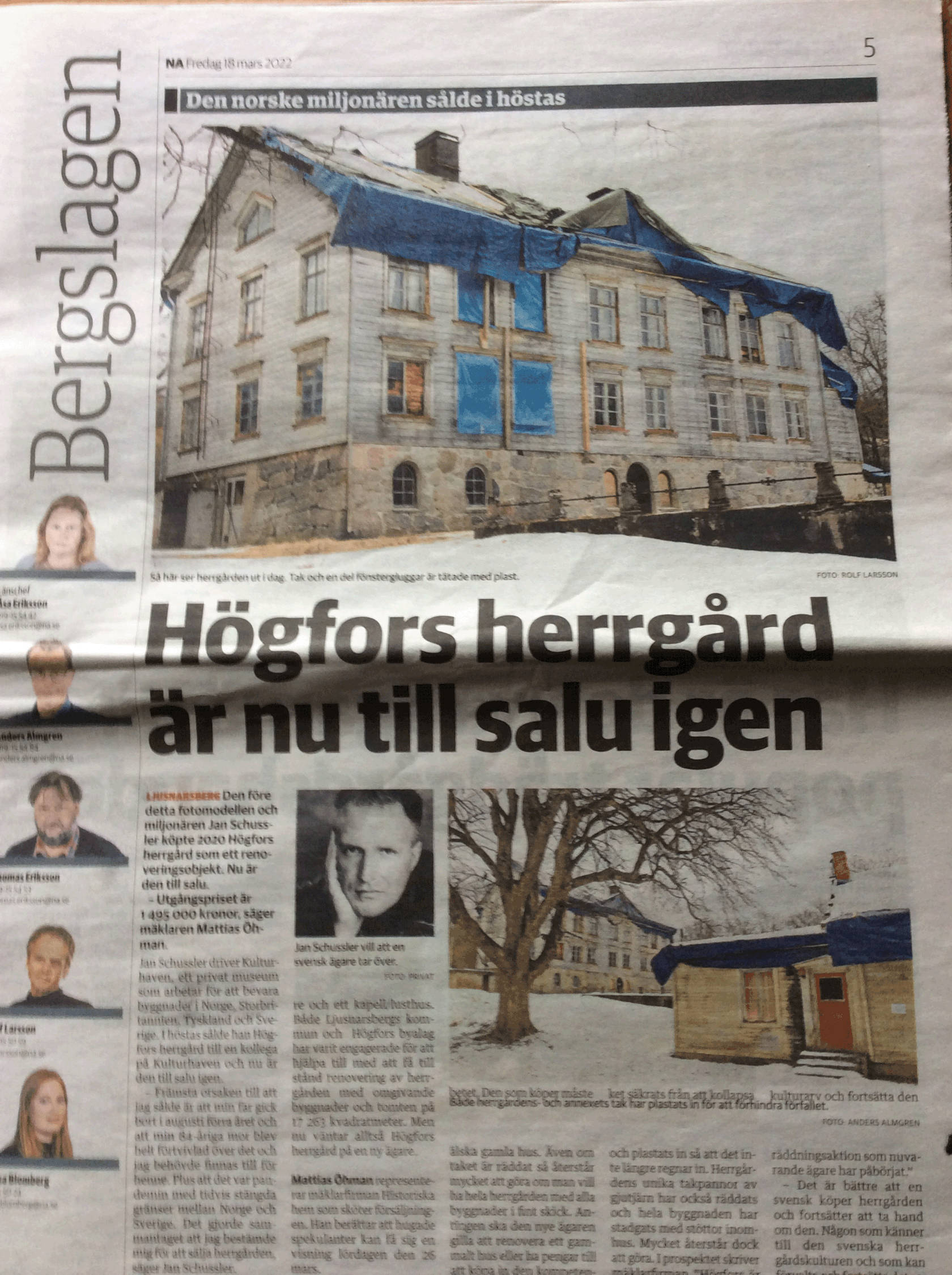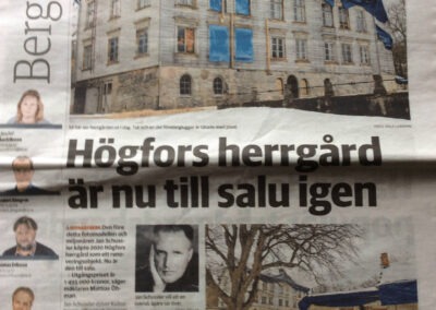 Her kan du se bilder fra den ferdigsikkrede herregården og noen eksempler på presseoppslag fra svenske medier.