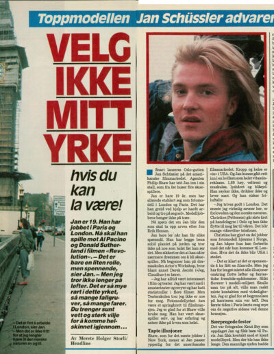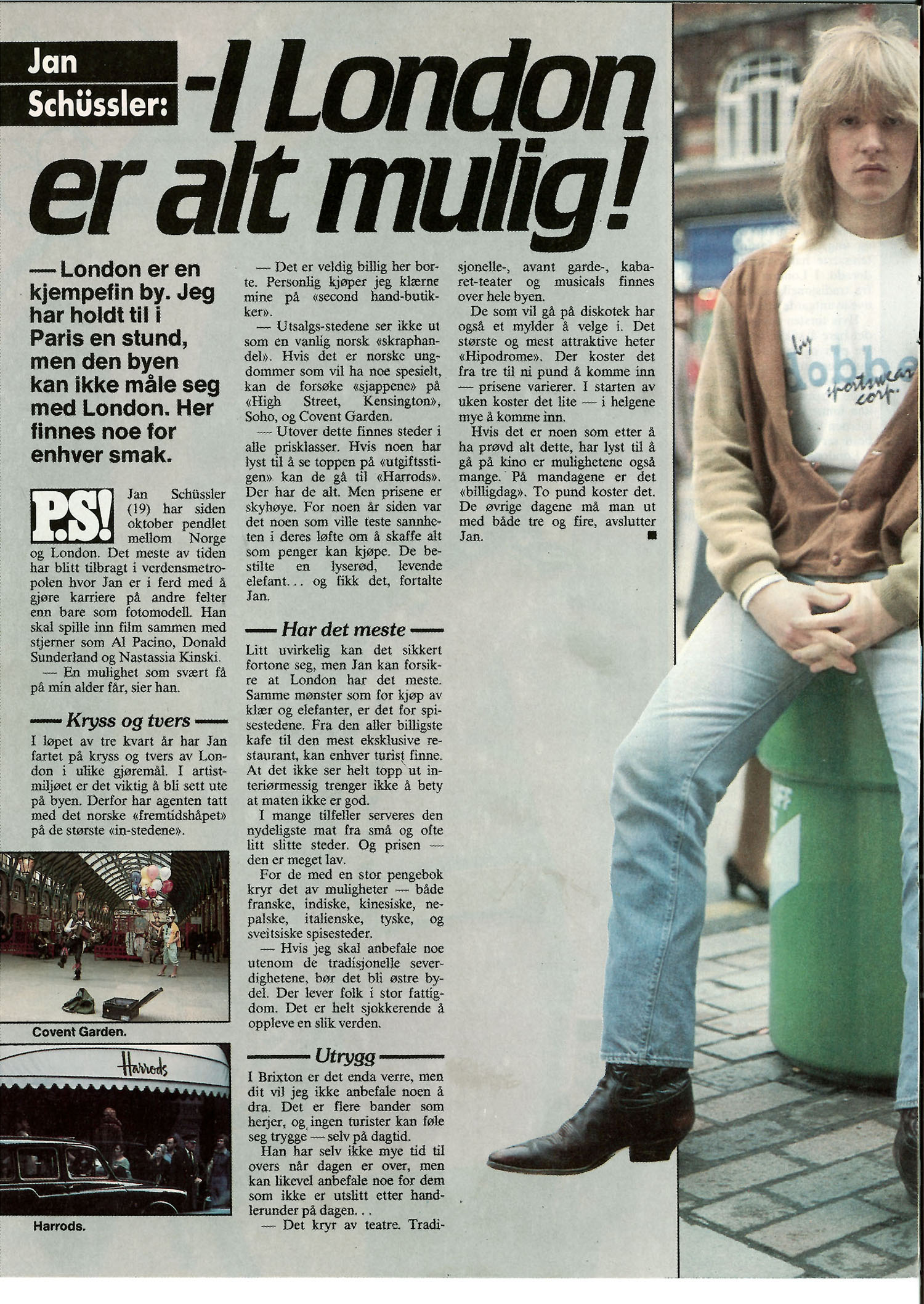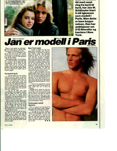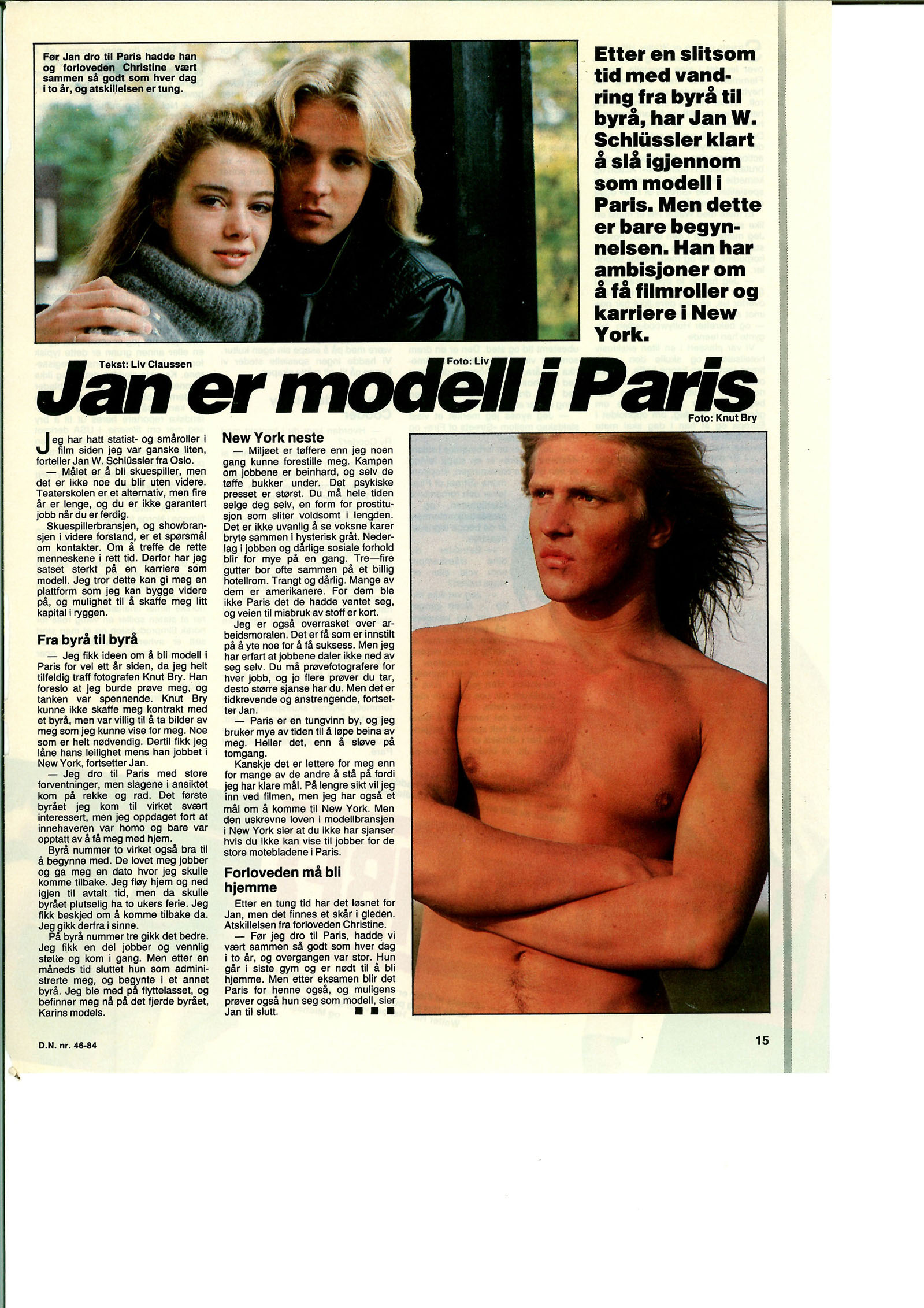 Men det var først ved årsskiftet 1983-1984 at Jan ble stoppet på gaten i Oslo av mesterfotografen Knut Bry, som der og da tok noen prøvebilder som resulterte i et konkret modelltilbud fra prestisjebyrået First i Paris.