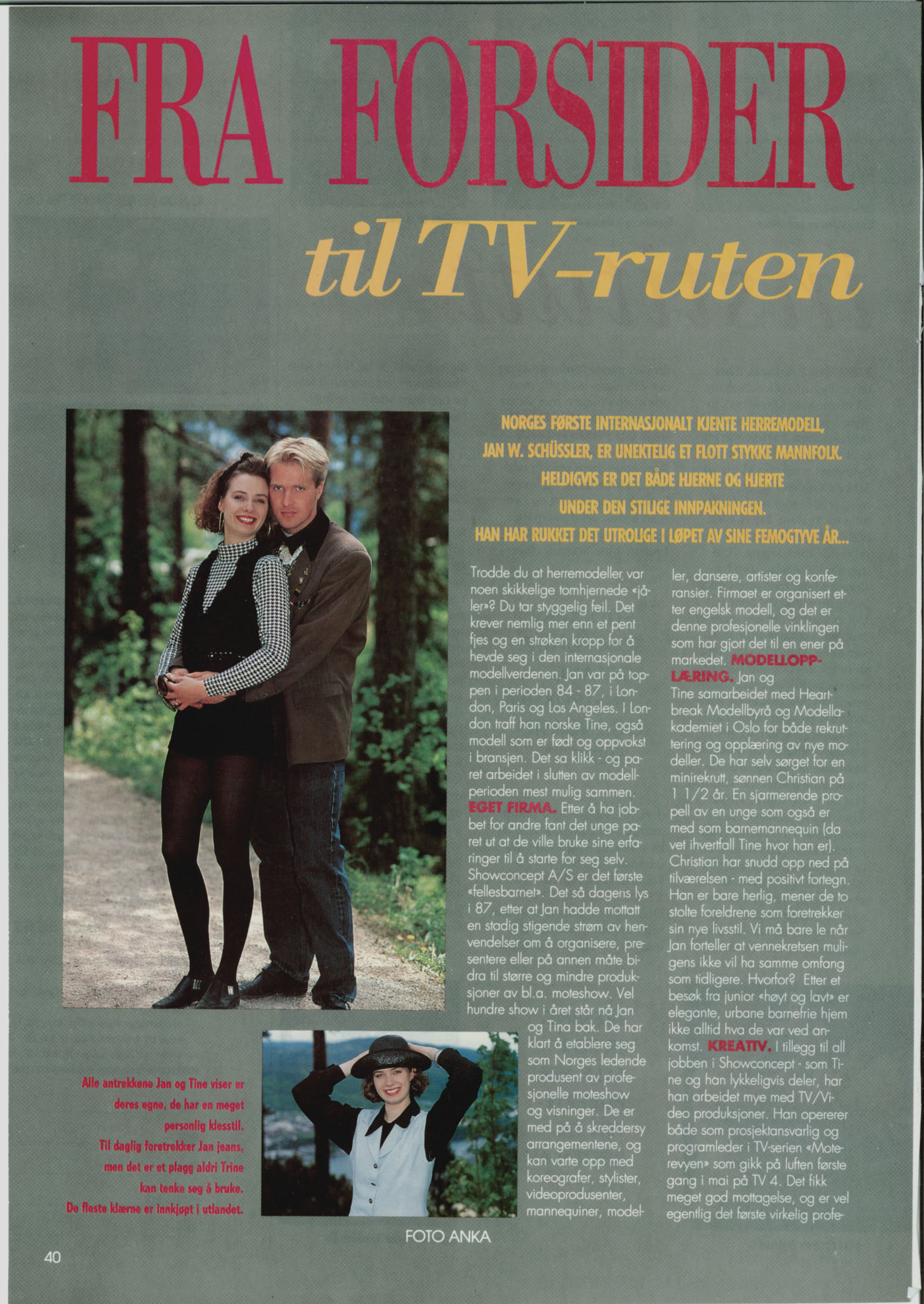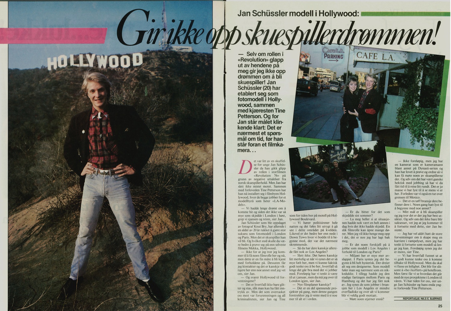 Etter avsluttet skolegang, film og revyproduskjoner, gjorde Jan våren og sommeren 1984 en rekke store fotoshoots med Knut Bry blant annet for motebladet Tique og italienske Taverniti.
