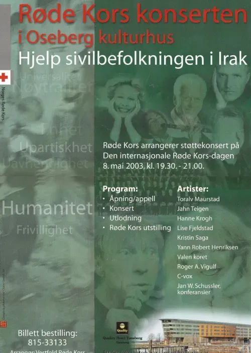 Røde kors for Irak 2003, samt konserter med bla. Barb Jungr, Wenche Myhre,